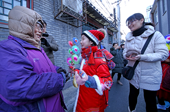 立春日有巡游迎春,感受春臨大地,萬物復蘇的習俗。結合立春習俗和地區民俗文化,以“喊春送?!睘橹骶€,發動轄區內家庭、學校選取“春的使者”,通過唱童謠、贈春糧、送福袋的形式,體現春天“溫暖、美好、活力”等特質的訊息;通過選取地區“疏整促”示范胡同、街巷進行巡游,展現東城區建國門人“靜胡同、慢生活”的治理理念和恢復古都風貌的奮斗成果;通過慰問地區道德模范、優秀志愿者、百歲老人等內容,謳歌真善美,弘揚主旋律。