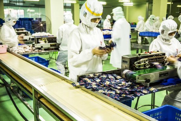 在建行融資的支持下,福建詔安縣安邦水產食品公司加速復工復產。資料照片