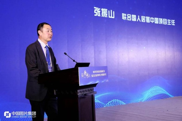 ????圖為聯合國人居署中國項目主任張振山發表致辭