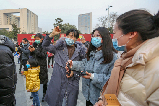 中醫專家們為市民測量血壓。