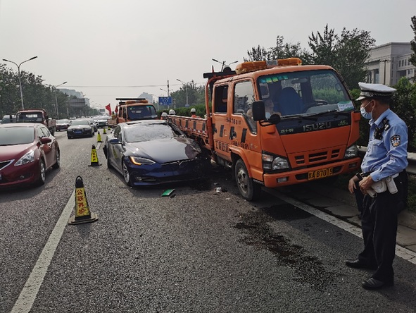 2020年7月29日,北京南四環特斯拉“自動駕駛”發生的一起交通事故現場。(圖片由車主焦女士提供)
