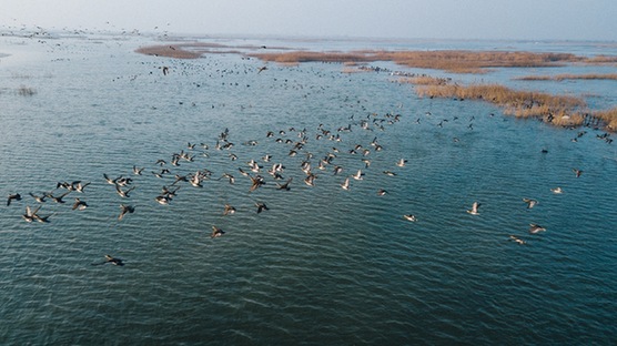 2020年以來,東營濕地保護工作成效顯著,包括9個濕地修復項目總投資達5.3億元,退耕還濕、退養還灘7.25萬畝等。位于黃河入??诘纳綎|黃河三角洲國家級自然保護區,擁有我國暖溫帶最完整、最廣闊、最年輕的濕地生態系統,有著“鳥類國際機場”的美譽。隨著生態環境不斷改善,國家一級保護鳥類東方白鸛在保護區筑巢繁殖累計近2000只。被視為濕地生態環境變化指示物種的黑嘴鷗,在2020年年中完成的種群監測數據中,有近9000只在保護區參與繁殖。