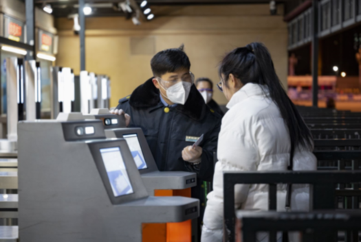 目前,北京局集團公司管內各站已經全面實施電子客票,旅客無需提前取票,持身份證、港澳臺居民居住證、外國人永久居留身份證就可一次刷臉驗證乘車。