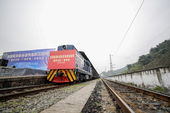 2020年3月6日,在重慶涪陵西站,陸海新通道鐵海聯運班列涪陵班列整裝待發。