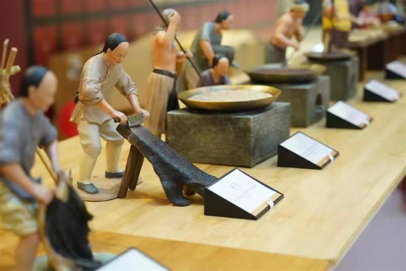活動現場擺放的人偶,展示了東阿阿膠傳統生產制作工藝。