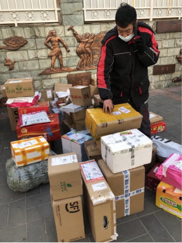 除了為疫情防控而提倡的就地過年政策,春節期間物流需求增加是眾多快遞小哥選擇留京的重要原因。以順豐廣外紅居街營業點為例,張振濤說,由于營業點周圍居民區眾多,加之很多不回老家過年的都是80后、90后,郵寄年貨的特別多,多的時候他一天得送出近千個快遞。