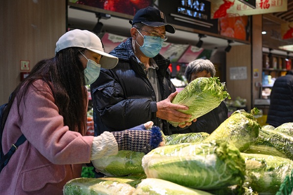 圖為超市發雙榆樹店內消費者在選購大白菜。記者 潘悅 攝