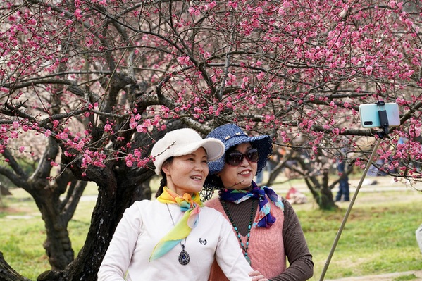 春節假期,武漢東湖梅園的梅花競相綻放,吸引眾多市民來這里賞梅拍照。記者 余國慶 攝