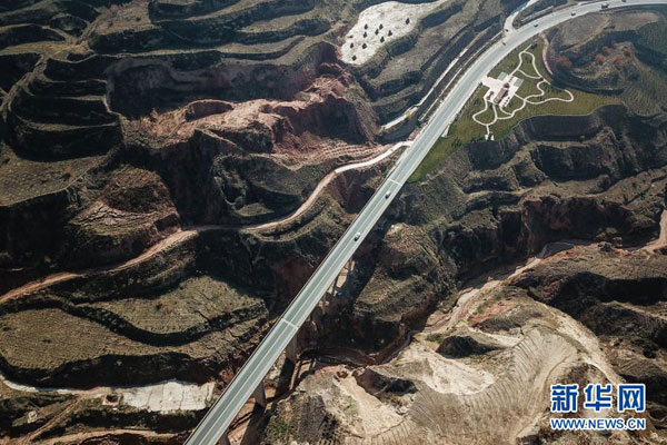 這是2020年11月9日拍攝的甘肅省臨夏回族自治州東鄉族自治縣布楞溝村折紅二級公路(無人機照片)。脫貧攻堅工作開展以來,布楞溝村硬化村道20公里,修建邊溝18.5公里、橋梁1座,折紅二級公路穿村而過,有效解決群眾出行難的問題。新華社記者 馬希平 攝