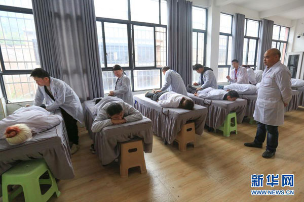在位于貴州省畢節市七星關區長春堡鎮清豐社區的畢節市盲人技能培訓學校,學員參加技能培訓(2020年10月13日攝)。新華社發(王純亮 攝)
