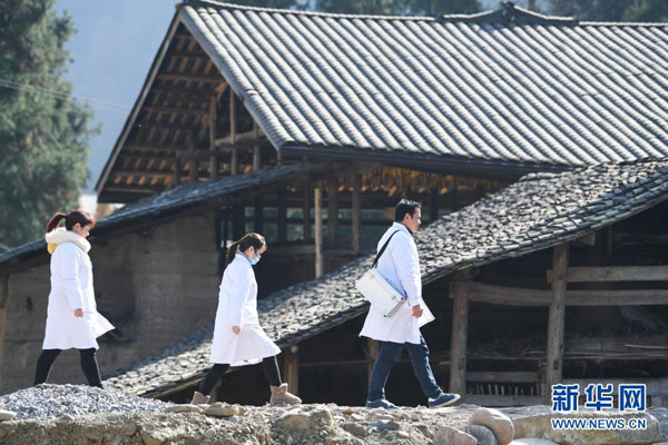 2019年12月10日,重慶市石柱土家族自治縣中益鄉衛生院的醫護人員來到中益鄉鹽井村,對貧困戶進行病情隨訪和健康指導。新華社記者 王全超 攝