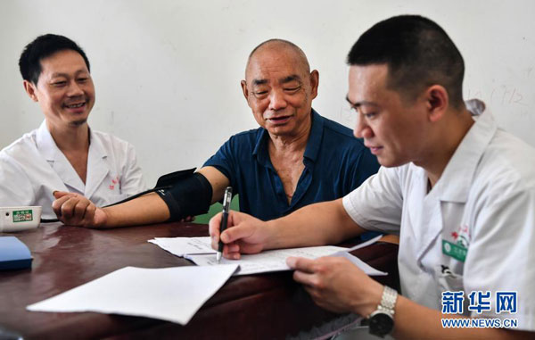 陜西安康市嵐皋縣佐龍鎮中心衛生院的醫生在佐龍村對家庭醫生簽約服務對象進行慢性病隨訪(2020年7月30日攝)。新華社記者 劉瀟 攝