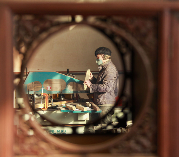 工人在河北唐山遵化市新店子鎮康各莊村一家紅木加工企業車間工作。新華社發(劉滿倉 攝)