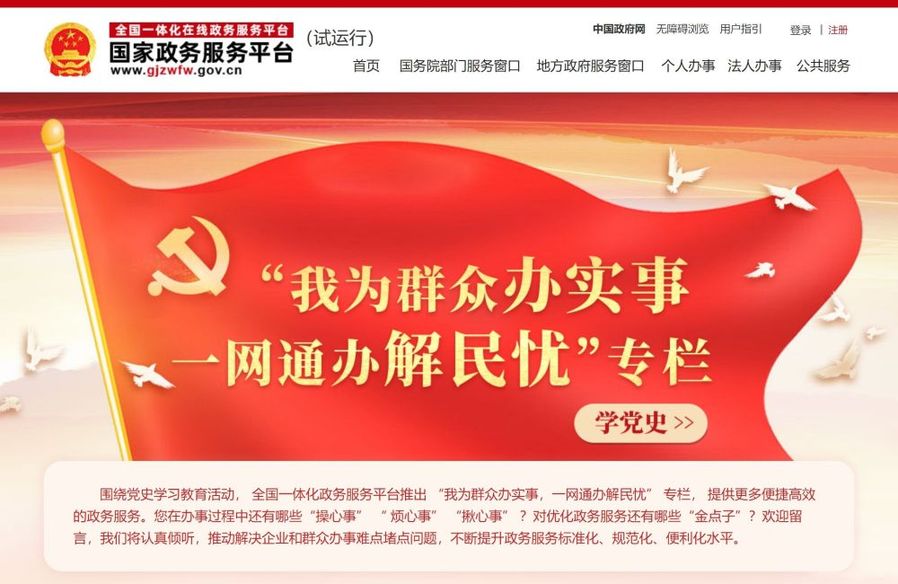 國家政務服務平臺上線“我為群眾辦實事,一網通辦解民憂”專欄