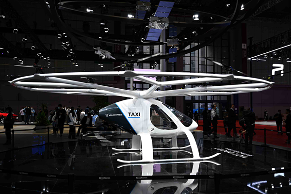 車展上展示的純電動兩座直升機。記者 潘越 攝