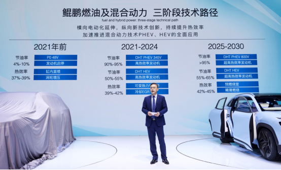 據奇瑞汽車股份有限公司總經理助理、奇瑞動力系統技術中心執行總監古春山介紹,通過三個階段技術創新,鯤鵬燃油及混合動力的熱效率和節油率將大幅提升,熱效率最高可達到45%,節油率超過95%?;谌禄旌蟿恿夹g的PHEV、HEV也將全面應用,為用戶帶來更先進、更多樣的動力選擇。