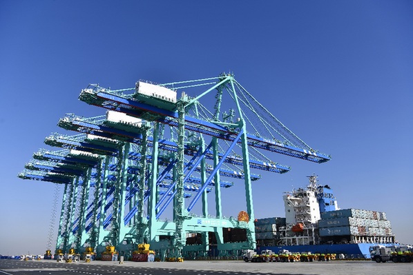????天津港北疆港區C段智能化集裝箱碼頭一號泊位。記者 趙子碩 攝