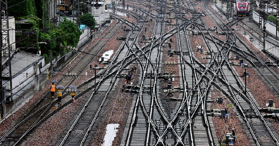鐵路職工在鄭州火車站巡查鐵路線路