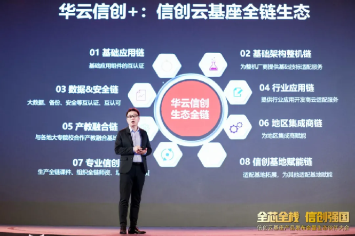 信創產業仍處于發展早期,當前行業發展仍有諸多問題亟待解決,例如基礎軟硬件產品的落后需要著重突破。在本次發布會上,華云數據信創云基座產品正式亮相。