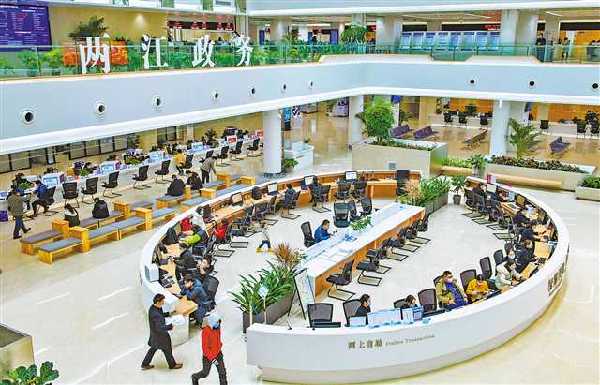 在兩江新區(自貿試驗區)政務大廳,市民在各個區域有序辦理業務。該政務大廳為市民提供包括不動產登記、社保、社會事務等1003項事務的“一站式”政務服務。(資料圖片)記者 張錦輝 攝/視覺重慶