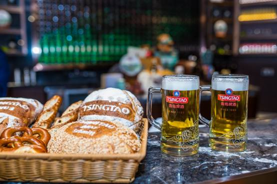 除了新鮮正宗的全系青島啤酒,各種啤酒烹飪的美食也成為TSINGTAO 1903時尚酒吧的另一特色。新機場的啤酒吧,啤酒特色菜品的出現,讓旅途中的人們解鎖不一樣的機場美味。為滿足商旅快消需求,機場酒吧還特別定制啤酒特色各類簡餐,供旅客享用。啤酒入味的創意料理、加入啤酒的酒香咖啡、用啤酒酵母制作的啤酒面包、啤酒瓶形狀的冰激凌……在這里所有入口的東西,都與“啤酒”有關。