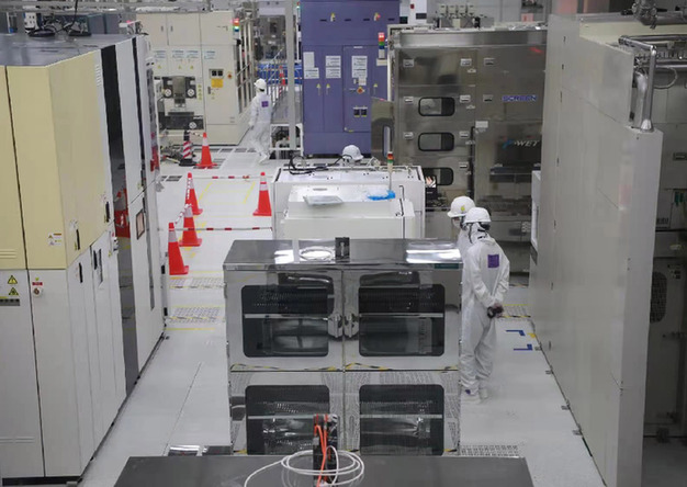 在廈門通富微電公司生產車間的外墻上,掛著一張“金凸塊流程”生產工藝示意圖,在全流程15道工序所采用的技術設備中,有12道工序標注了一面小的五星紅旗 ,寓意使用的是國產設備,包括濺射機、勻膠機、光刻機、顯影機、電鍍機、光阻剝離機、金蝕刻機等。實際上,在廈門通富已采購的513臺套生產裝備中,國產裝備達346臺套,裝備國產化率達67%。
