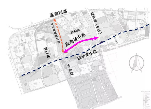 吳中路位置特殊,局部穿越虹橋鎮中心地區,道路兩側均已建成,難以拓寬。緩解吳中路交通壓力,只能尋找另一條東西向的主干道。這條路在吳中路的北側,就是吳美路?。