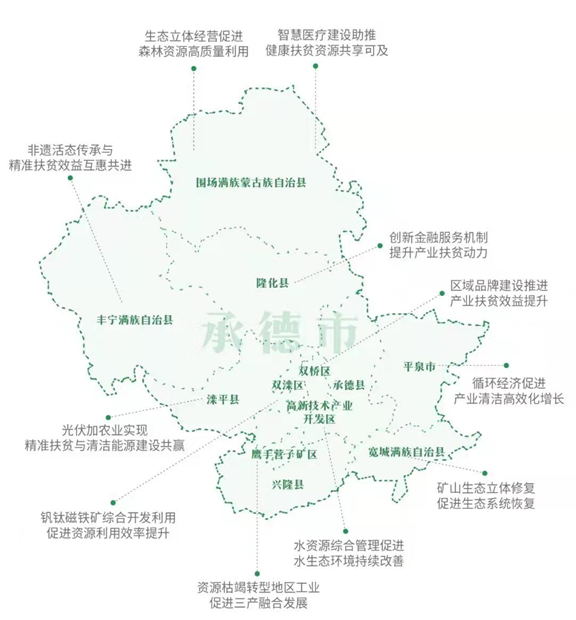 圖為承德各縣(市、區)在落實2030年可持續發展議程方面的部分地方實踐。