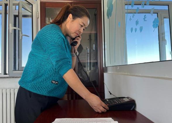 圖為王娟正在給場防火指揮部通報林區情況。攝影 潘悅