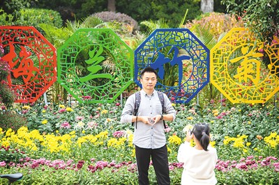 ??? 今年以來,湖北經濟復蘇勢頭良好。圖為10月31日,游客在武漢琴臺綠化廣場賞菊拍照。 伍志尊攝(新華社發)
