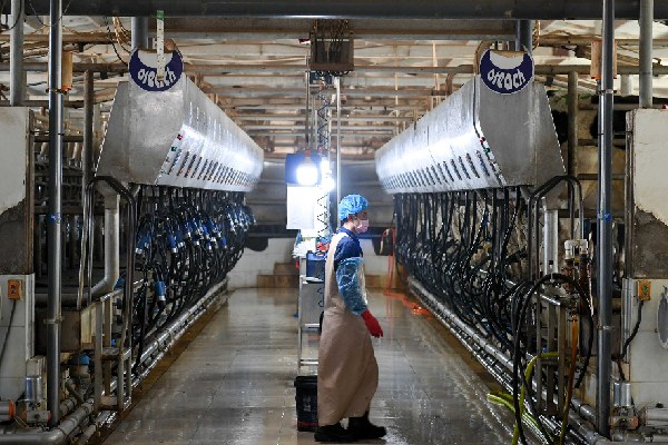 這是1月19日拍攝的巴彥淖爾市臨河區東鑫奶牛養殖專業合作社擠奶車間。