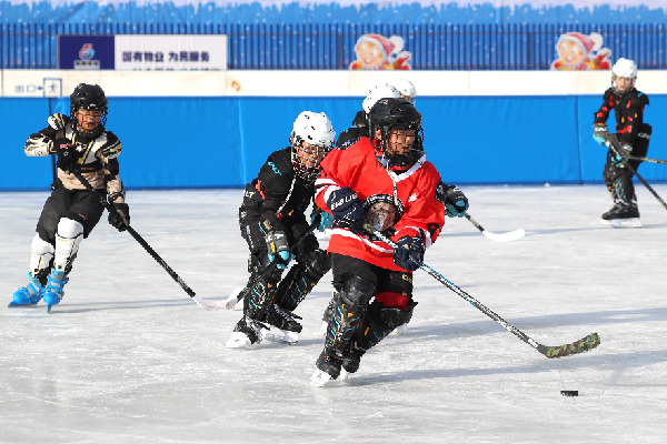 圖為冰球愛好者在張家口經濟開發區一家滑冰場進行冰球訓練。近年來,河北省張家口市大力推廣冰雪運動,升級冰雪項目設施,多措并舉助推冰雪產業做大做強,吸引更多居民參與到滑冰、滑雪、冰球等冰雪運動之中,感受冰雪運動的魅力。(資料照片)