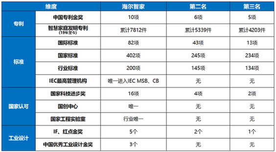 單是在產品科技方面,海爾智家目前就有178項原創科技被行業跟進。在國家級獎項方面,海爾智家累計獲得了16項國家科技進步獎,行業最多,拿下10項中國專利金獎,同樣也是行業最多。在國際方面,海爾智家累計主導和參與國際標準數量達到行業最多的82項,也是全球唯一同時進入IEC CB和IEC MSB兩大最高管理機構的企業。如今的海爾智家,在專利、標準、國家認可、工業設計等領域均已做到行業第一。