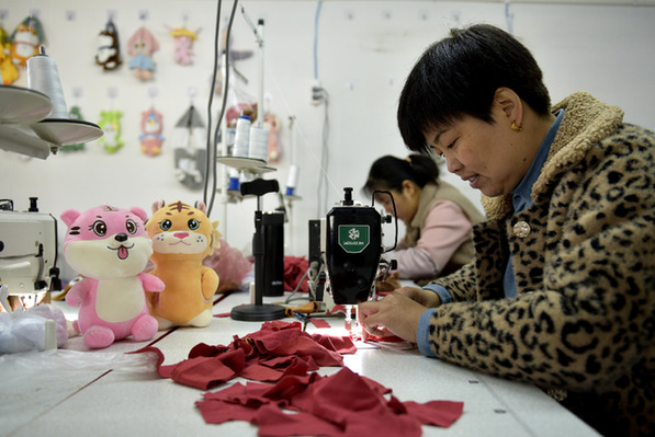 近年來,河北省邢臺市臨城縣積極拓寬農村留守婦女就業渠道,通過在鄉村建立“鄉村微工廠”“農家微車間”等,將就業崗位送到村民家門口,吸納留守婦女在家門口靈活就業。圖為臨城縣鴨鴿營鄉西辛安村一家毛絨玩具生產車間,村民在加工毛絨玩具。(資料照片)