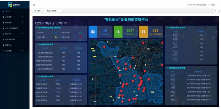 這是閔行區交通委聯合區發改委推出了危運客運駕駛員“積分制”管理新舉措,對全區49家危運客運企業3000多名駕駛員進行日??己?。平臺上,駕駛員評分優良名單、駕駛員積分預警,以及企業信用評分等情況一目了然。這項舉措在全市客危運安全監管屬于首創。