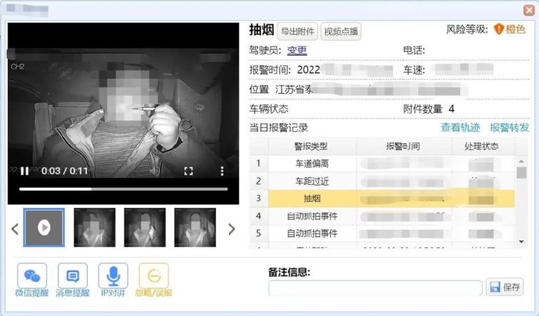 “3月2日,某公司車輛行駛在安徽無為縣境內時,駕駛員邊開車邊抽煙”……在閔行區“危運客運”企業監管平臺上,記者看到從車輛視頻監控傳到后臺的一幕。面臨的后果是,該公司扣10分罰款500元,駕駛員扣20分并扣除考核工資60%。