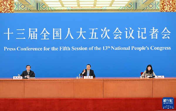 3月11日上午,十三屆全國人大五次會議在北京人民大會堂舉行記者會,國務院總理李克強應大會發言人張業遂的邀請出席記者會,并回答中外記者提問。新華社記者 殷博古 攝