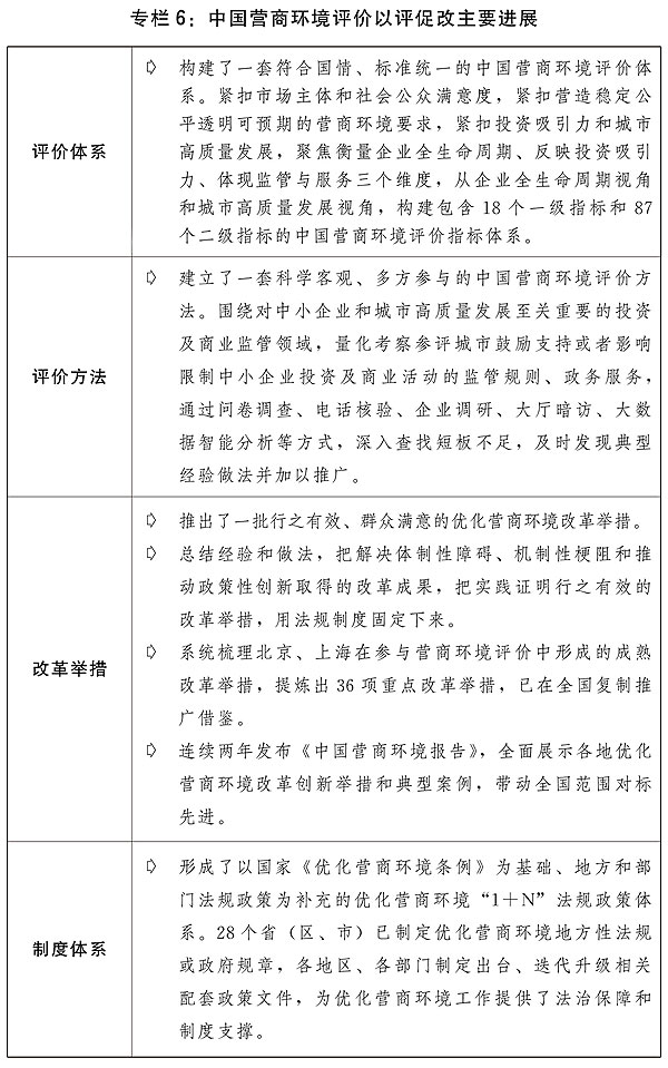 三是打造市場化法治化國際化營商環境。持續推進“放管服”改革,對取消和下放審批事項要同步落實監管責任和措施。繼續擴大市場準入。建立健全營商環境法規體系,持續抓好《優化營商環境條例》落實工作,建立損害營商環境案例歸集通報制度。規范和用好營商環境評價機制,適時在全國組織開展營商環境評價。探索制定營商環境評價國家標準。推進長三角等重點區域優化營商環境一體化發展,復制推廣優化營商環境典型經驗和創新做法。全面實行行政許可事項清單管理。加強數字政府建設,推動政務數據共享,基本實現電子證照全國互認互通。強化政府監管責任,嚴格落實行業主管部門、相關部門監管責任和地方政府屬地監管責任。加快建立健全全方位、多層次、立體化監管體系,實現事前事中事后全鏈條全領域監管,提高監管效能。強化反壟斷和反不正當競爭,深入推進公平競爭政策實施。