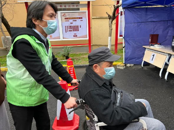 為了縮短核酸篩查等候的時間,盡可能地為居民提供方便,虹橋鎮各居民區的社區干部可沒有少動腦筋?!氨睔W風”排隊?有條件,盡量安排上。腿腳不便?有志愿者,不怕。學生要上網課?這算什么難題,走綠色通道!