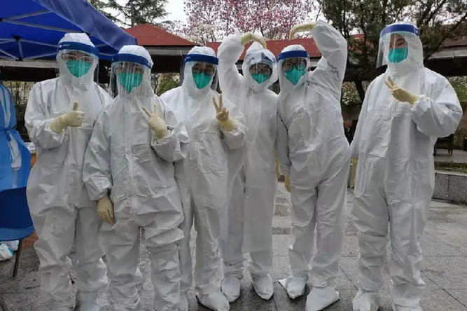 由于對今天降溫預估不足,加上為了能更合適穿上大白防護服,六位醫護人員都穿得比較少,寒風中還是有些冷的,她們在工作空隙時間時不時上上下下跳了起來,宛如一只只可愛的小白兔,讓核酸采樣現場更加鮮活起來了。