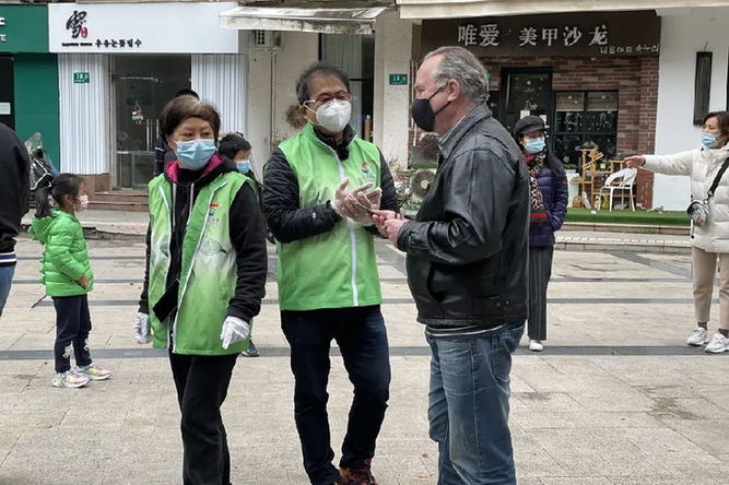 今天一早,5、6名韓籍志愿者已經來到核酸篩查現場,他們要承擔現場的外籍人士引導和翻譯工作。韓籍居民樸昌柱就是其中一員,他說:“我是小區的居民,在上海也有20年了,本身也熱愛做公益,我還是韓籍人士微信群的群主,現在群里有1100多位居民。疫情工作是大家的事情,做志愿者工作當仁不讓?!?/p>