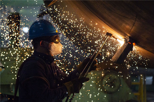 3月28日,工人在哈電集團哈爾濱鍋爐廠有限責任公司生產車間內作業,在從嚴從實做好防控工作的同時穩產保供。新華社記者 謝劍飛 攝