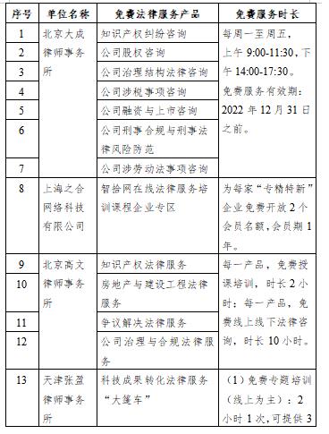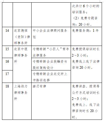 為幫助中小企業特別是“專精特新”中小企業獲得精準、有效的法律服務,中國中小企業發展促進中心向法律服務機構開展了公益服務項目征集工作。最終優選了7家在全國或區域具有較高專業水平、較強社會責任意識、公益服務能力過硬的法律服務機構提供的18項法律服務產品組成服務包,涵蓋公司治理、企業合規、融資上市、知識產權、科技成果轉化、股權稅務、勞動糾紛、爭議解決、房地產與建設工程、游戲產業法律服務等領域,向“專精特新”及“小巨人”企業免費提供。服務產品特色突出、針對性強,能較好地滿足專精特新及“小巨人”企業實際法律需求。