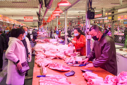 在農貿批發市場,市民在采購豬肉。(資料照片)新華社記者 彭源 攝