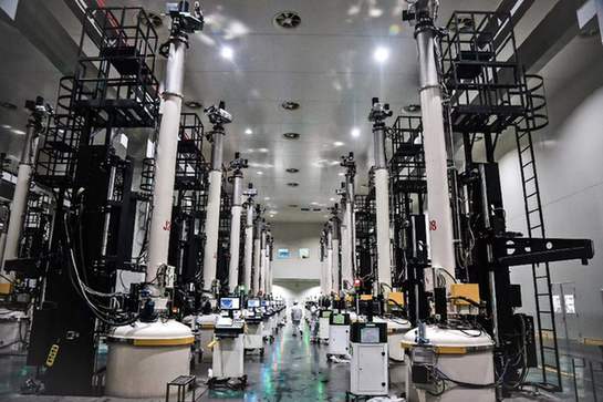 圖為銀川隆基光伏科技有限公司的單晶硅棒生產車間。資料照片