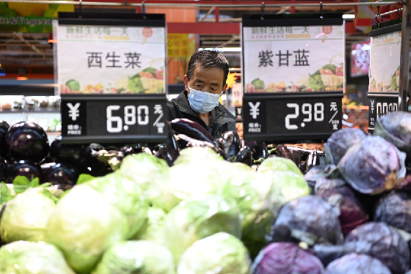 4月18日,在西寧大十字百貨商店有限公司廣場店,市民選購蔬菜。