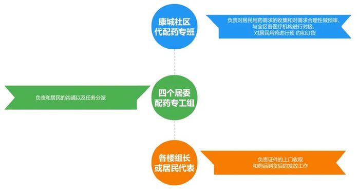 針對超大型社區——上??党蔷用竦母黝惻渌幮枨髥栴},4月9日區委派駐的重點居村抗疫工作專班進駐社區開展情況摸底、組織研究工作方案、精心優化代配藥流程等工作,經與社區黨委、居委充分溝通后,于4月14日發布了《康城社區疫情期間優化代配藥服務工作的通知》,形成了代配藥“康城新做法”。