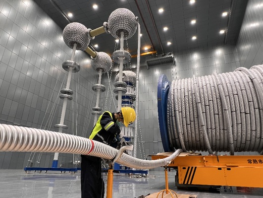 圖為東方電纜工作人員正在做產品檢測試驗。資料照片