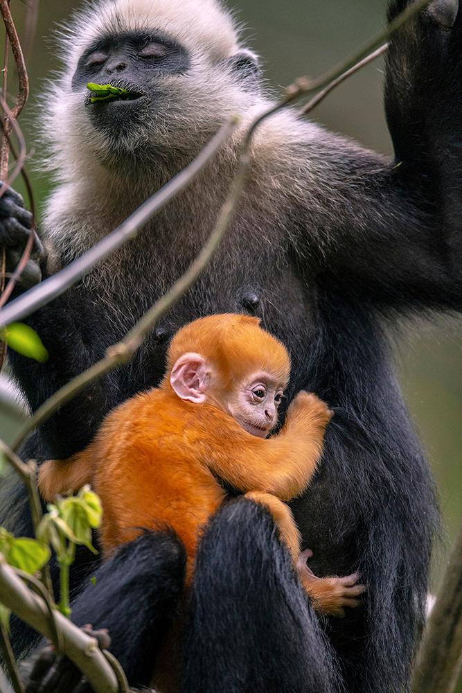 它們以猴群為社會基本結構,新生的白頭葉猴全身呈金黃色,之后逐漸長成白頭、白肩、長尾巴的模樣。