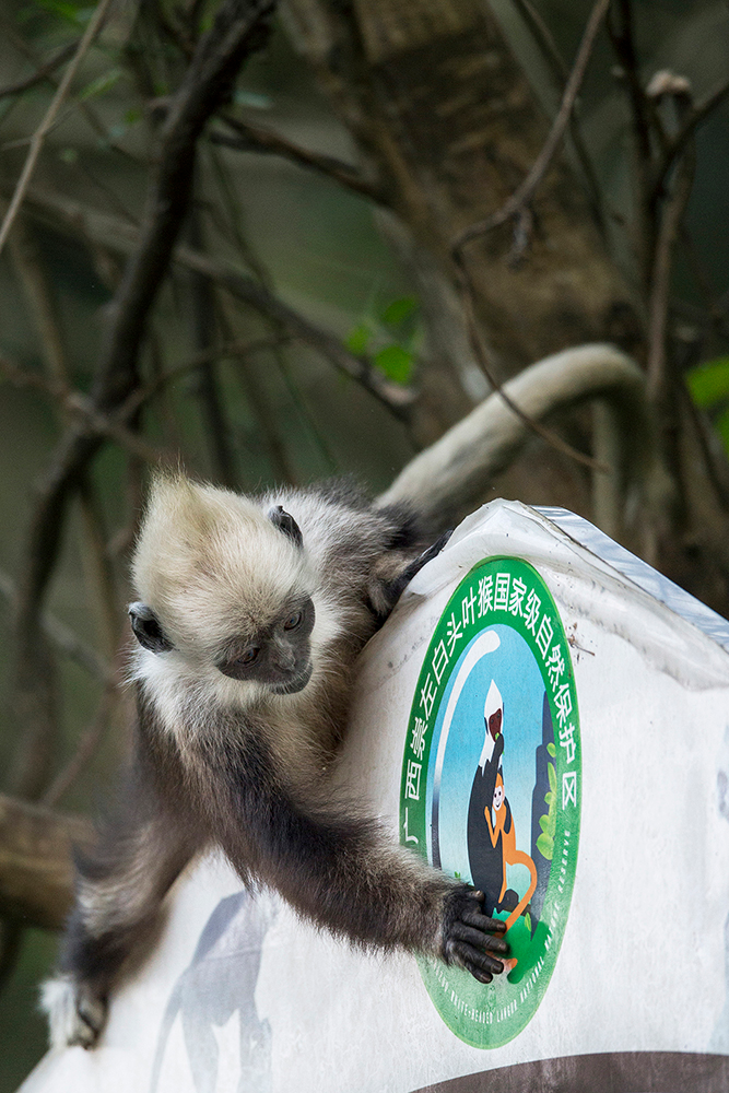 白頭葉猴距今已有300萬年的生存歷史,主要分布在廣西崇左市左江和明江之間不足200平方公里的喀斯特石山地區,因而也被稱為“石山精靈”。